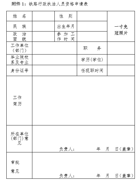 (一)执法人员资格申请表(附件1);