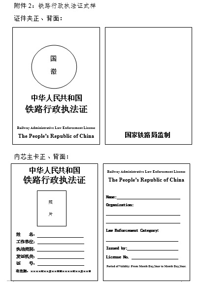 第十四条 执法证由国家铁路局统一制作,套印国家铁路局印章,并加盖国家铁路局行政执法证件专用钢印。