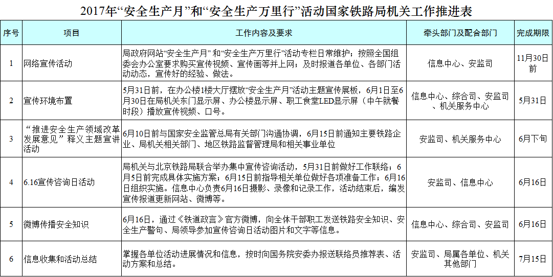 国家铁路局2017年“安全生产月”和“安全生产万里行”活动实施方案