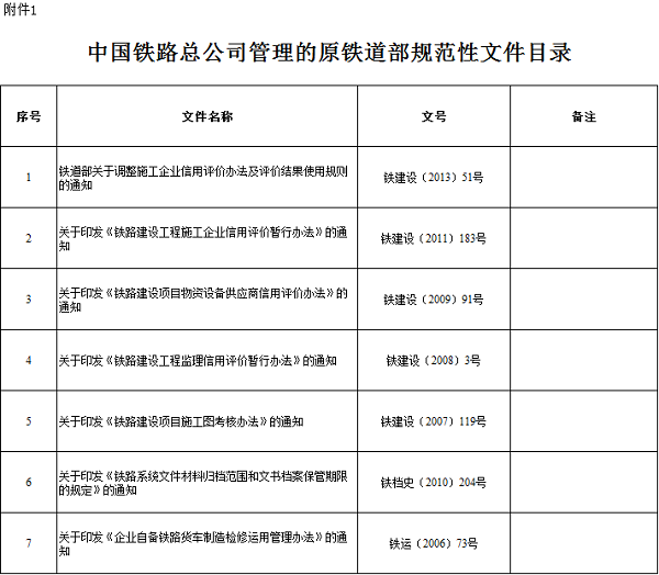 附件:1.中国铁路总公司管理的原铁道部规范性文件目录