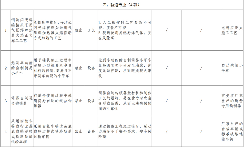 国家铁路局关于发布《铁路建设工程危及生产安全施工工艺、设备和材料淘汰目录(第一批)》的公告