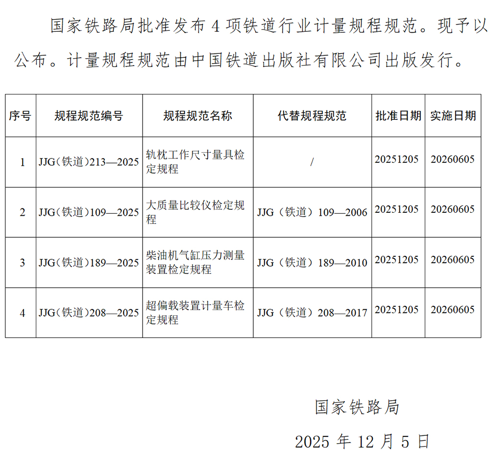 下一篇:国家铁路局关于发布《线路曲线矢距测量仪》等3项铁道行业计量规程规范的公告