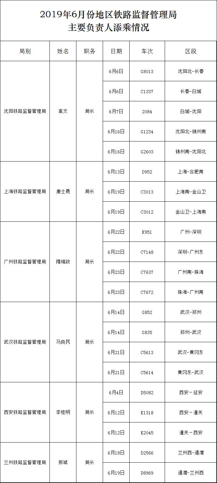 下一篇:2019年6月份地区铁路监督管理局主要负责人添乘情况