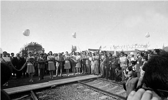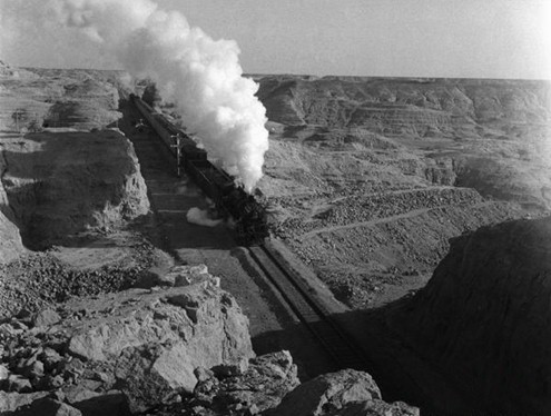 1962年12月9日,兰新铁路建成通车,列车通过百里风区。