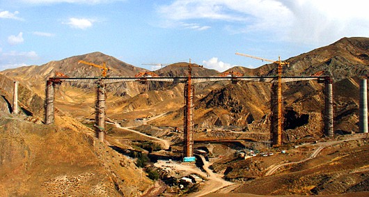 2007年正在施工的精伊霍铁路克其克苏布台特大桥。