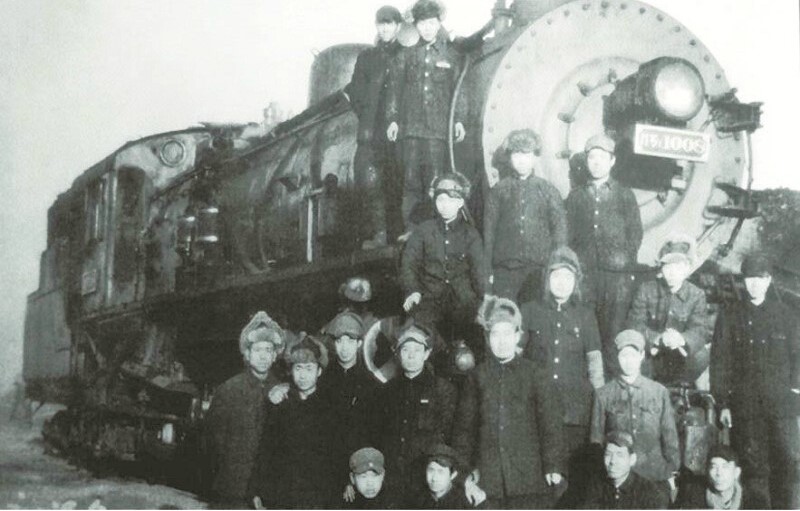 1956年5月4日,“黄继光号”青年机车组命名仪式结束后,机车组全体成员合影。