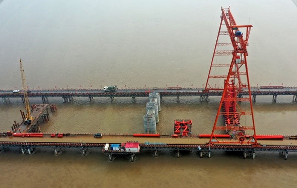 由中铁大桥局承建的郑(州)济(南)高铁郑州黄河特大桥首件连续钢桁梁顺利架设到位,标志着郑济高铁郑州黄河特大桥正式进入连续钢桁梁施工阶段。