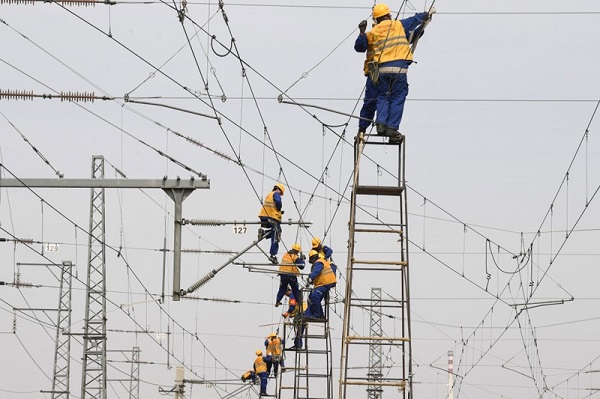 3月19日,工人们在唐呼线张集段古营盘站场进行线网改造。
