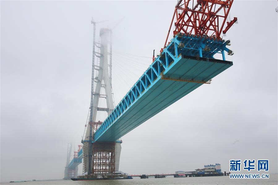 沪通长江大桥南主塔顺利封顶。至此,该桥两座高达330米的主塔全部建成,标志着世界最大跨度公铁两用斜拉桥建设取得了关键性进展。