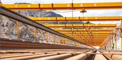 4月23日,拉林铁路今年复工以来的首列长钢轨进入协荣铺架基地。袁泉 丁庆滨摄影报道