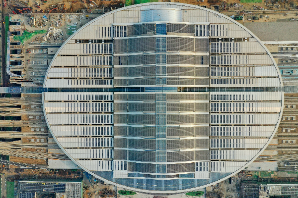 京雄城际铁路雄安站,椭圆形屋顶是一座光伏电站。