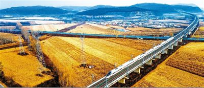 稻谷飘香,秋粮满仓。当前正是丰收时节,各地积极抓好秋收工作,确保颗粒归仓。近日,一列动车组列车行驶在黑龙江省依兰县,铁路两侧金色稻田呈现一派丰收景象。