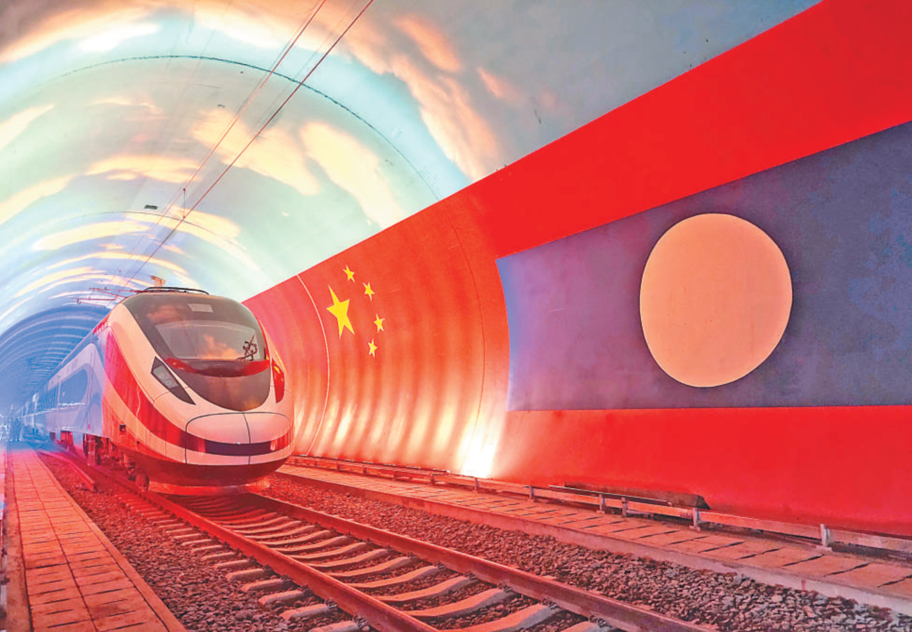 中国和老挝加快打造更加紧密的“一带一路”伙伴关系,共同推动构建人类命运共同体。2021年12月3日,全长1035公里、连接昆明和万象的中老铁路全线开通运营。图为10月15日,“澜沧号”动车组通过中老友谊隧道内的两国边界交付老挝方面。