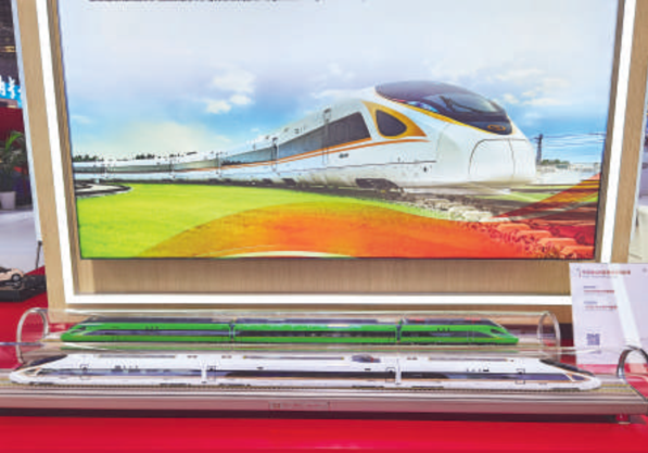 吉林专区展示的京张高铁复兴号冬奥智能动车组模型。