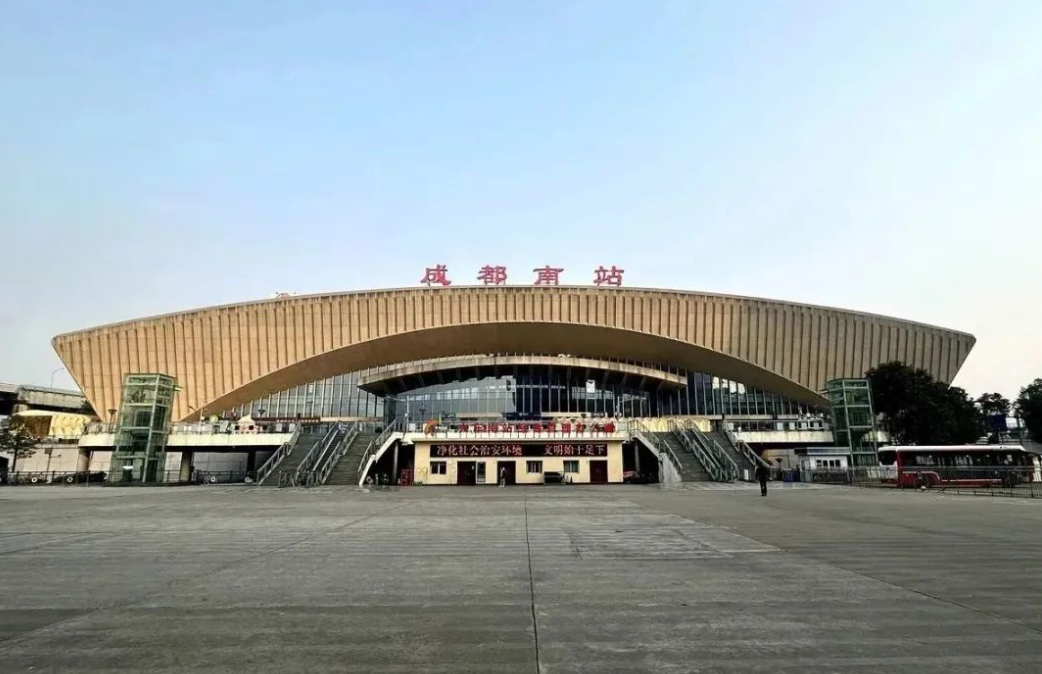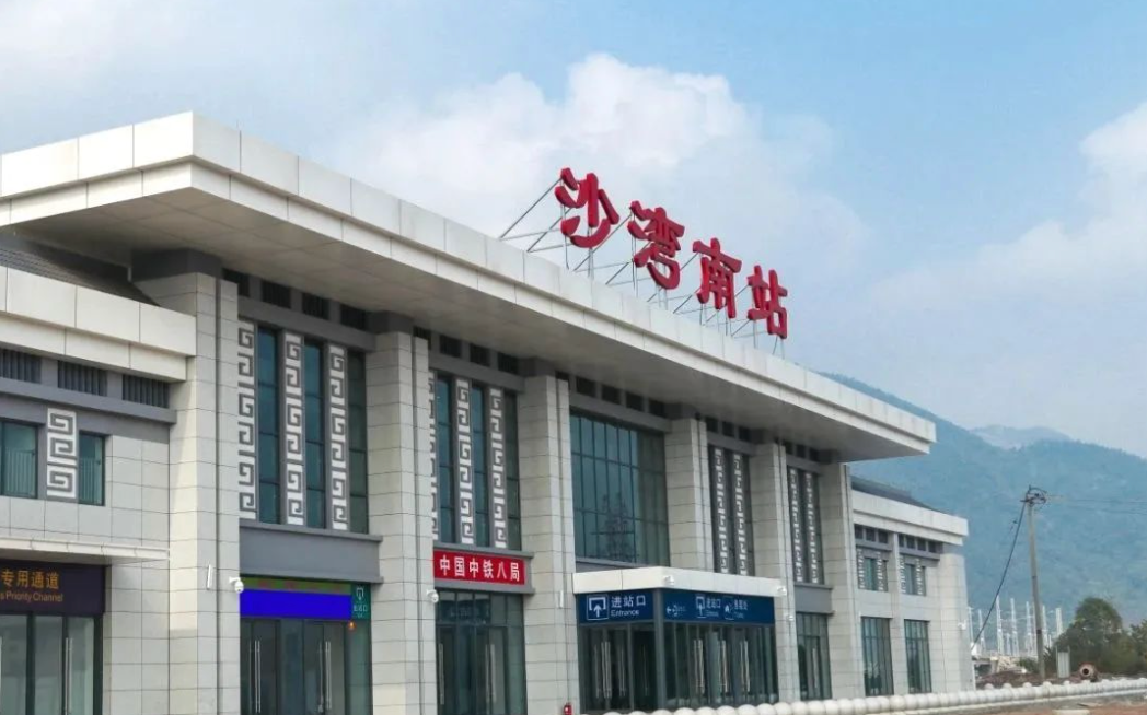 沙湾南站位于四川省乐山市沙湾区。站房设计理念源自郭沫若故居,采用斜坡屋顶、小青瓦屋面,镂空雕花窗与玻璃墙面相得益彰。