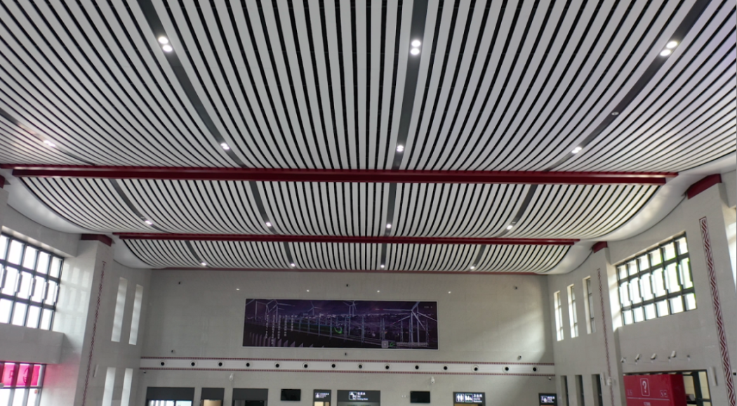 峨边南站位于乐山市峨边彝族自治县大溪沟。站房以“山水画廊”为设计理念,从彝族传统建筑中抽取牛角的意象,形成契合当地特色的现代化车站。