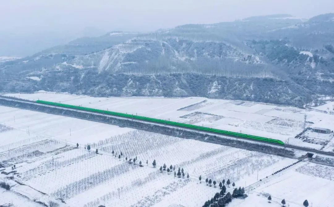 一辆复兴号动集动车组行驶在包西线榆林市境内。