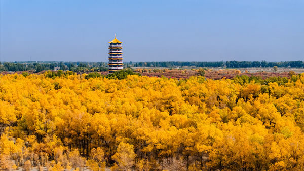 金塔沙漠胡杨林景区位于甘肃省酒泉市,金塔县城西北8公里处,占地面积达8万余亩,分布着西北地区最大的胡杨林。