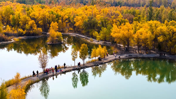 金塔沙漠胡杨林景区。