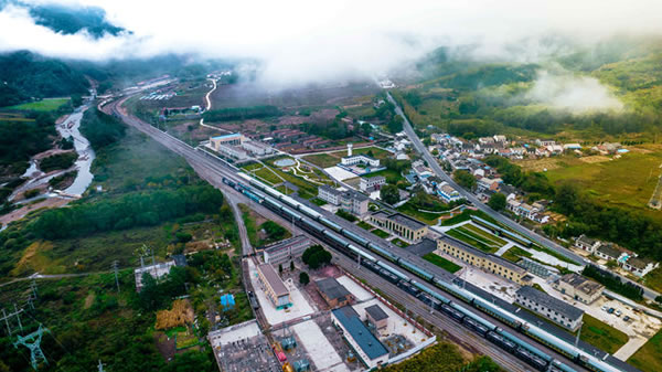 秦岭火车站航拍。