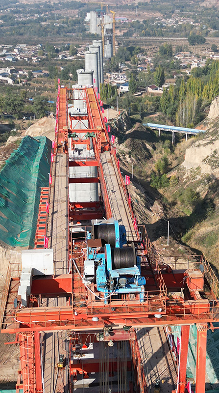 位于甘肃临夏境内的兰合铁路4标段泄湖峡大夏河特大桥胶拼梁架设施工现场。