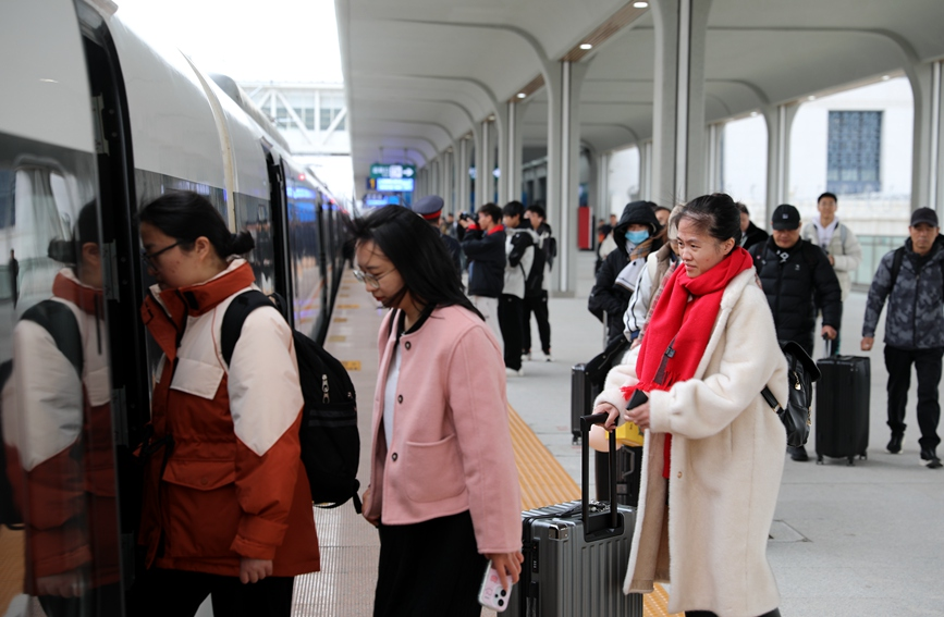 旅客陆续登上郑开城际列车。
