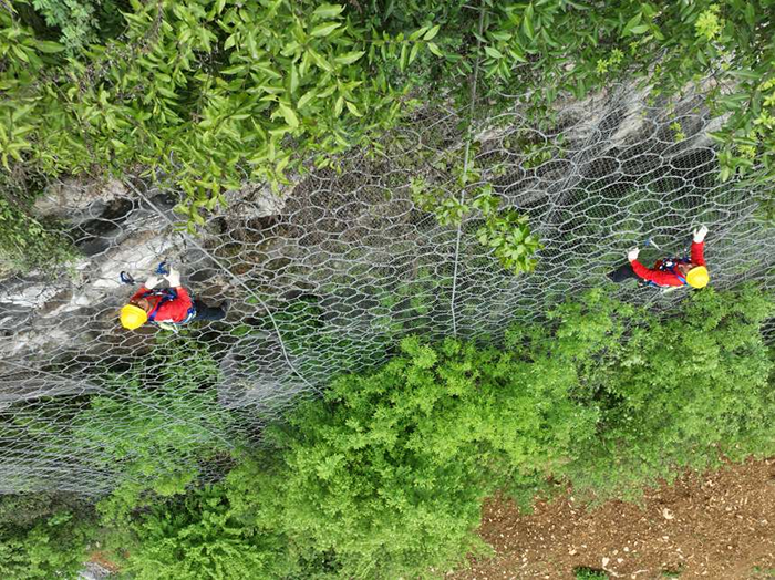 3个小时左右,该处山体排查处置完毕。这群“蜘蛛人”踩着主动网缓缓下山,顾不得休息,向着侯家坡隧道挺进。
