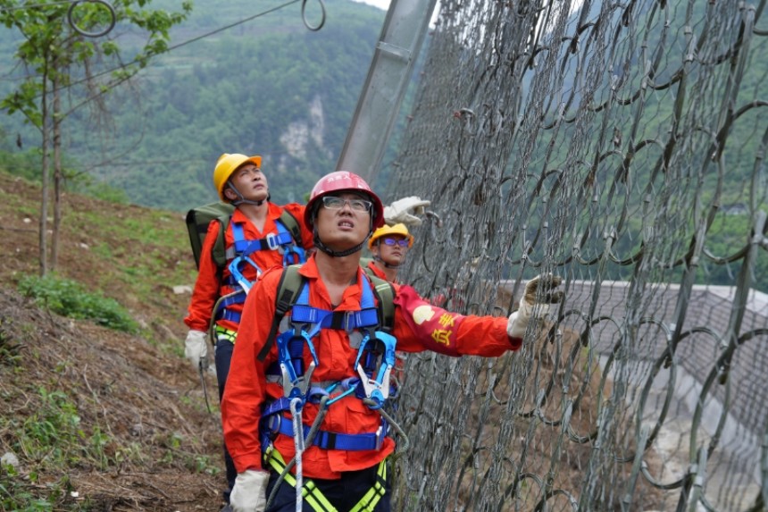 渝厦高铁沿线崖壁上的“蜘蛛人”