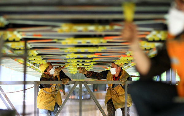 在大桥的很多狭小作业空间里,必须匍匐前进,对于这些基本动作,职工们早已驾轻就熟。