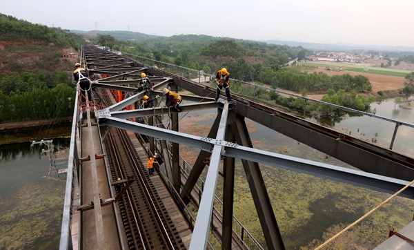 随着作业人员的工作节奏,拍摄持续了一周,但被桥梁工人职业精神的感动却永远的印在脑海里。这一份远离都市的高危职业并不为众人所熟悉,他们只是一群朴实的铁路人,用辛勤的汗水、用默默无闻的执着坚持保证了运输大动脉的安全畅通。