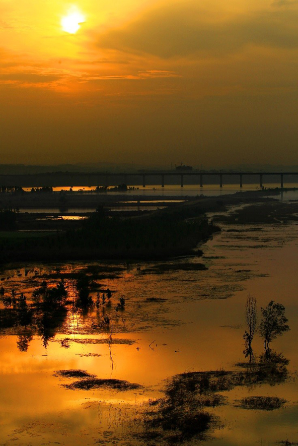 雄伟的长(垣)东(明)黄河大桥与滔滔的黄河水在夕阳的映照下构成了一副唯美的画面。