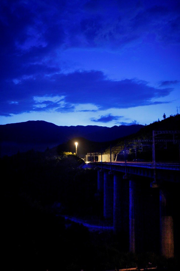 近十天的采访结束,记者离开时回头远眺,夜幕中桥那边的小站依然宁静。