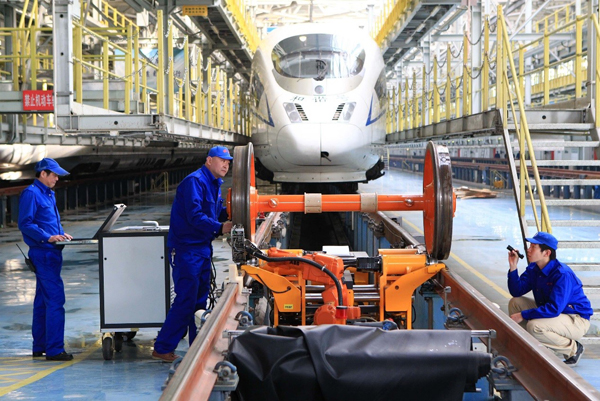 北京动车段合理调剂检修作业人员、加强动车组检修作业。于得庆 摄