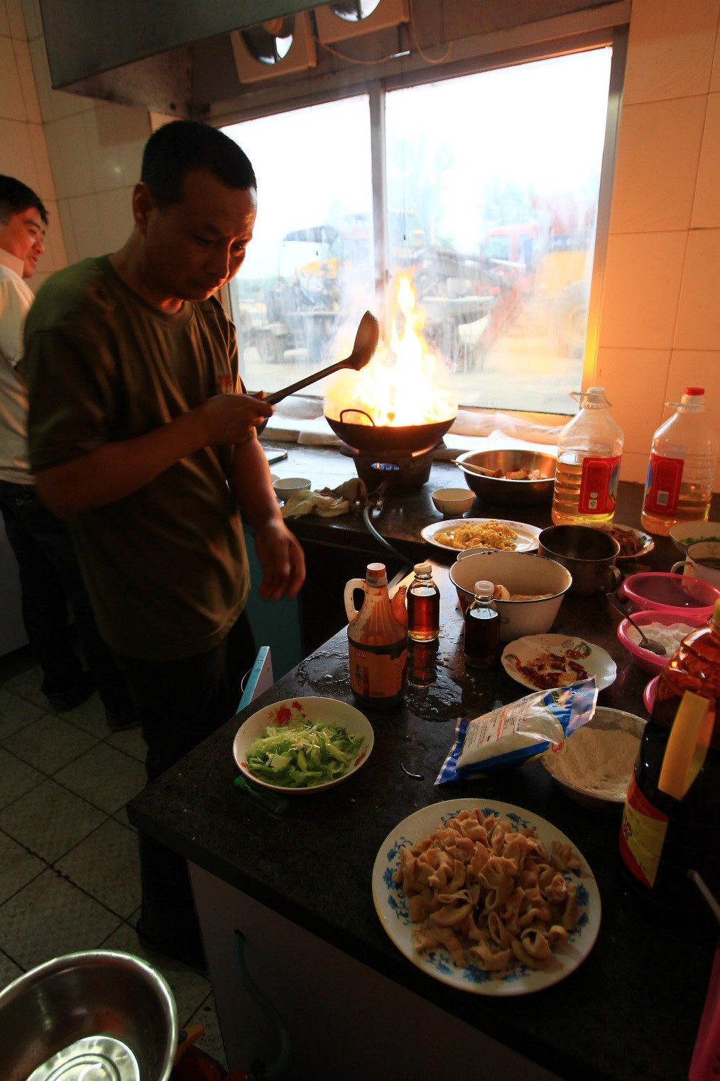 黄昏,车间主任管树勇由办公室前往开采区,单程近三公里的路程每天要走七、八个来回。