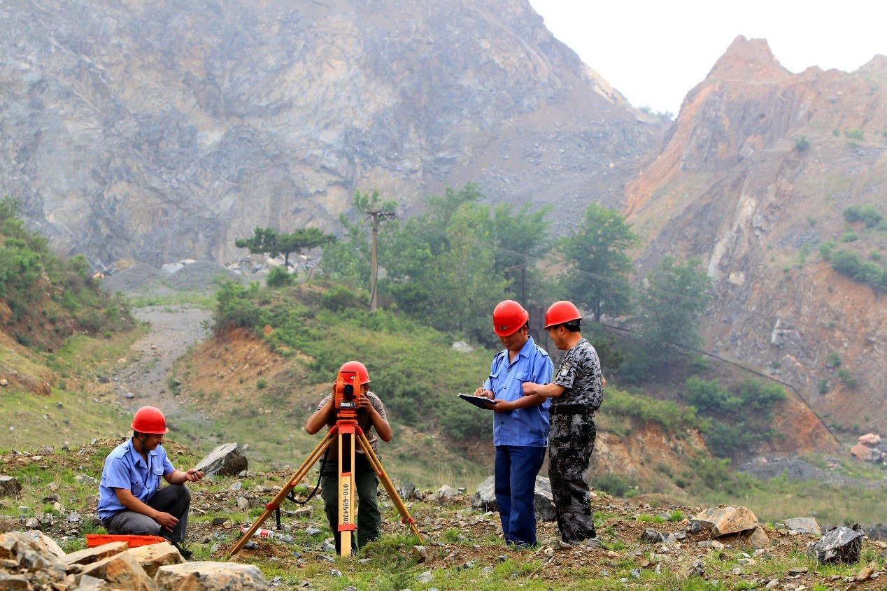 大山深处,技术人员进行开采作业的勘测工作。