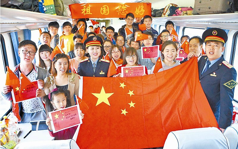 在太原客运段担当的K374次列车上,旅客们在乘务员的带领下齐声歌唱 《祖国好》,共同庆祝祖国母亲的生日。