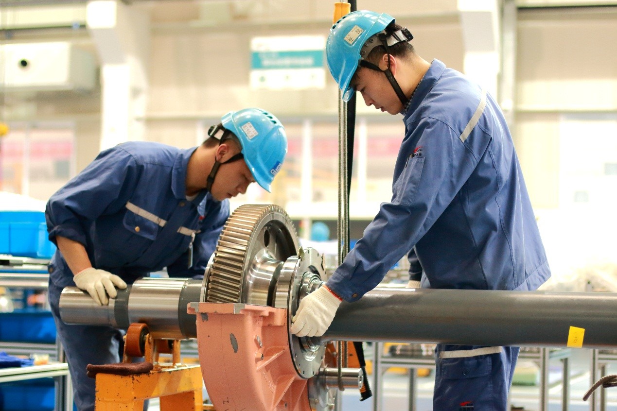 高速动车组齿轮驱动装置智能组装车间。