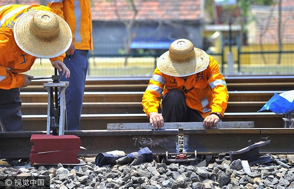 高温下的铁路焊轨工作者