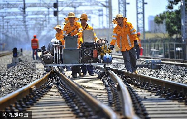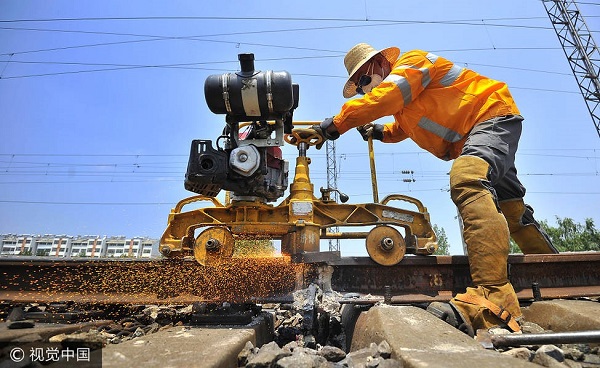 在炎炎夏季,他们每天都要在正午时分,头顶烈日,行走在炙热的铁道线路上为受伤的钢轨进行“接骨”作业;他们的工作就是与火为伴,每天都“享受”着日晒与火烤的双重考验;他们的坚守让列车运行更平稳,旅客乘车更舒适。