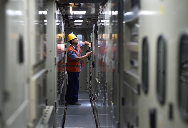 7月20日,专检工长孔祥福在一列电力机车的机械间检修。