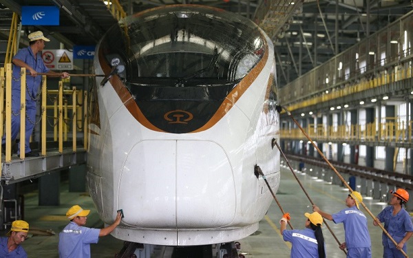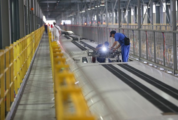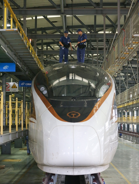 “复兴号”是我国具有完全自主知识产权、达到世界先进水平的中国标准动车组。350公里时速的正式运营,标志着我国成为世界高铁商业运营速度最高的国家。国庆期间,在上海动车段虹桥动车运用所,“复兴号”的幕后英雄们坚守一线,确保旅客出行安全。