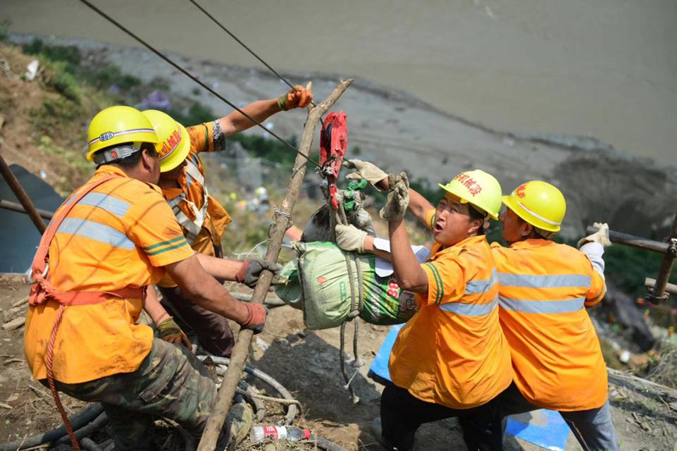 固定一座山,畅通一条路。烈日下,这些“喷浆人”们手握喷管,满身泥浆,不惧艰险,立于悬崖峭壁之上,只为宝成铁路能尽早恢复通车。