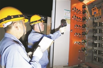 职工利用红外热成像测试仪对变压器、开关等重点处所进行温度测量。