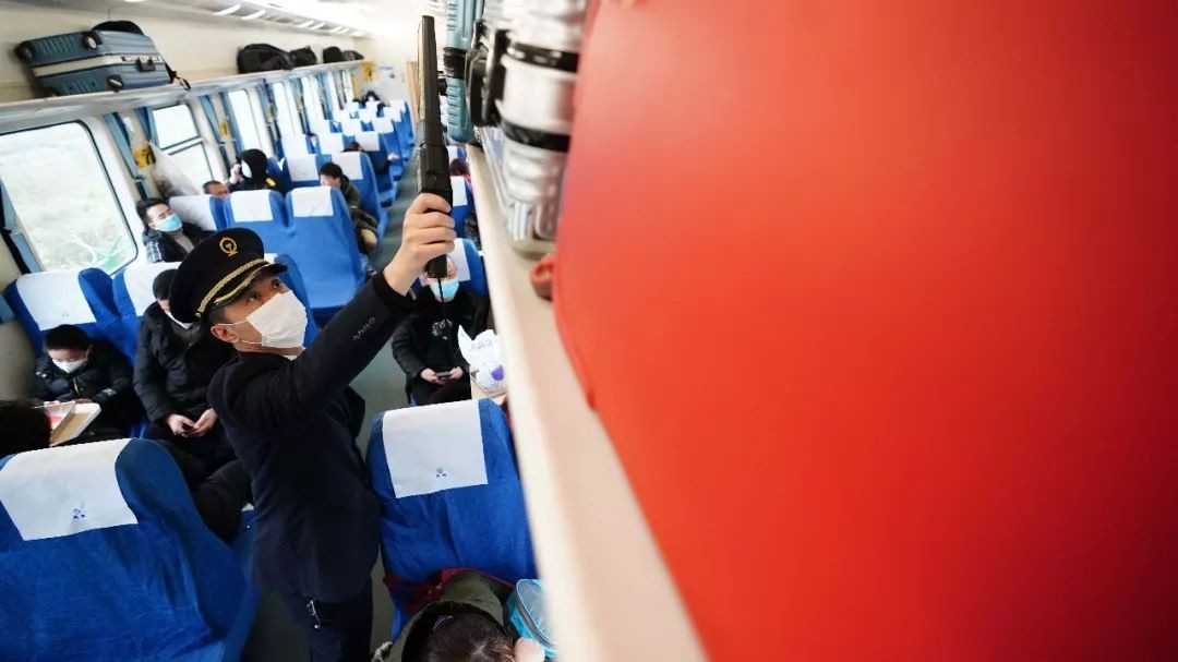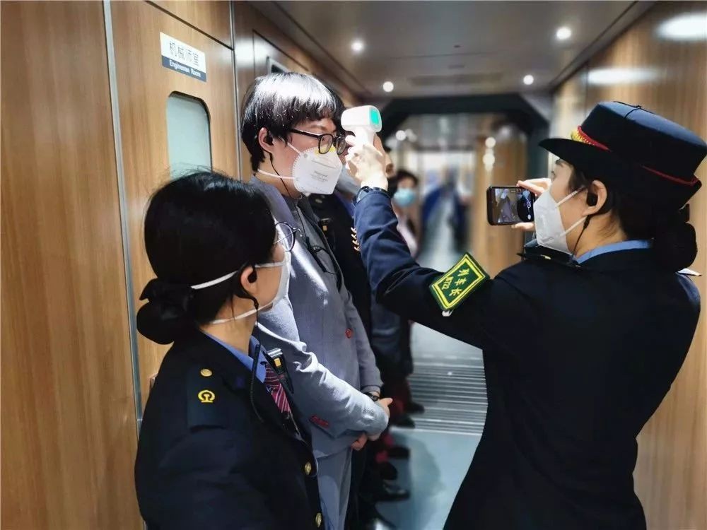 1月28日大年初四,面对新型冠状病毒,成都客运段乌鲁木齐车队临客成都至东莞东K4572次一组,严格按规定做好宣传、并对旅客和列车员进行体温测试。