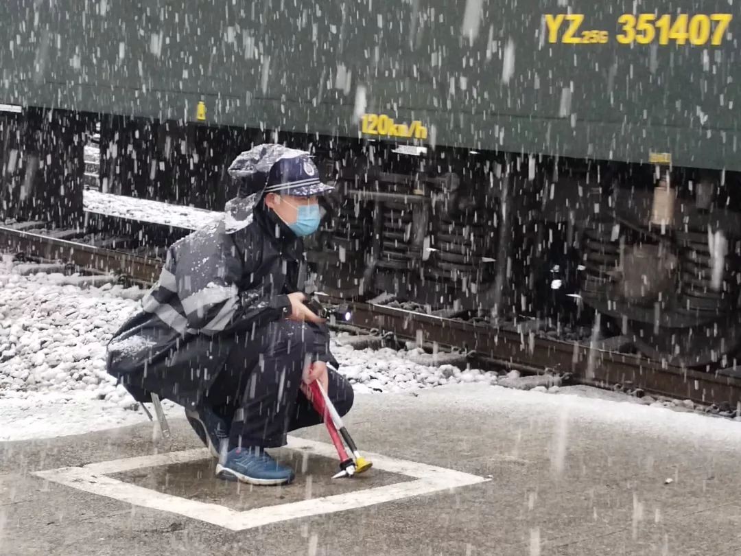 疫情当前,我就是铁柱,矗立岗位不后退,勇往直前守平安。“作为维护列车安全上线运行的最后一道关口,身为列检人员,无论风霜雨雪,坚守岗位是我的追求。”1月25日大年初一,贵阳车辆段检车员黄铁柱送车作业。