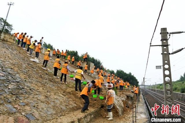 入汛以来,最强降雨给铁路防洪安全带来强大的挑战,由于遭受近期持续降雨侵袭和水流冲刷,导致中国铁路郑州局集团有限公司南阳工务段管内宁西铁路线防洪点出现堑坡溜塌现象。为防止泥石流水害侵入线路,连日来,该段迅速启动防洪抢险应急预案,组织70余名抢险人员紧急赶赴现场,对宁西线K354+200处的一百多米坡体进行水害整治,通过清理泥土石块、堆码沙袋加固等方式对隐患处所进行处置,使水害得到有效控制,全力保障恶劣天气下列车的运行安全。