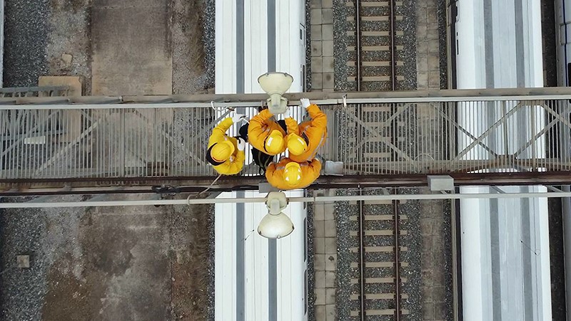 春运期间,中国铁路南宁局集团有限公司南宁动车所的接触网工们要定期登上24米高、120米长的灯桥,对列车运行径路的灯塔、灯桥、电力钢柱开展专项排查检修,确保亮灯率在80%以上,保障运行高峰期列车平安出行。
