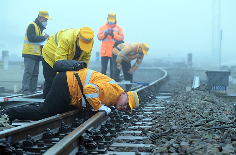 春运期间,铁路运输繁忙,负责维修和管理的“轨道医生”为轨道“诊断”、“治疗”,保障铁路安全畅通。近期,中国铁路上海局集团有限公司合肥工务段的工作人员抢抓列车停运的“天窗期”,开展钢轨维修更换、驼峰减速器整修等作业,保障铁路安全畅通。