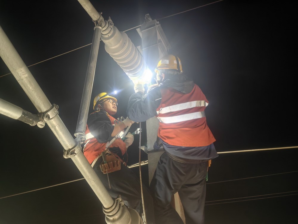 深夜22点,中国铁路青藏集团有限公司西宁供电段鸟岛接触网工区的接触网工们头戴头灯在鸟岛站场内夜间作业,调整接触网相关参数,做好绝缘关节、线岔、交叉线索间距等检测检查,防范弓网故障隐患,确保列车的安全供电和平稳运行。