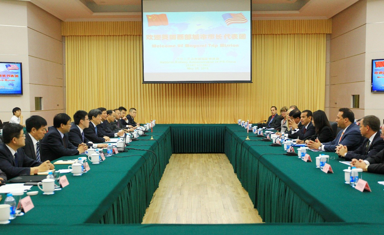 美方代表团成员来自加利福尼亚州和内华达州知名度较高的安大略、约巴琳达、比弗利山、伯班克、曼哈顿滩、摩萨滩和拉斯维加斯等城市。中方向美方重点介绍了中国铁路发展改革、高速铁路情况等。双方表示希望通过此次交流增进彼此了解,共同推动两国间经贸、人文、铁路基础设施等多领域合作。